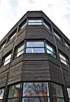 Et materialvalg hvor man har opplevd stor miljøeffekt, er valget av fasade. For å kle Powerhouse Kjørbo i et material med så lite bunden energi som mulig, valgte Powerhouse fasader av lokalt fremstilt trekledning. Da Bærum kommune krevde en mørk fasade for å ta igjen den eksisterende sorte fasaden, ble de nøye utvalgte trebordene i osp brent sorte ved hjelp av avkapp fra eikegulvproduksjonen ved samme sagbruk. Stenderverket i Powerhouse Kjørbo er også i tre.