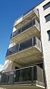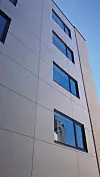 Blokkene er reist med plasstøpt betong og stålbæring. Etasjeskillene er i plattendekker. Fasadene består av lys teglstein og Prodema fasadeplater med mønster som illustrerer tre-