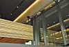 Det har også vært et arkitektonisk grep at bygget skal være gjennomsiktig. Hele byggets fasade er i glass. Også innvendig er glass benyttet i stort omfang. Bortsett fra fasadesøylene av stål, har hele bygget en bærekonstruksjon av betong.