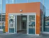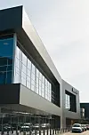 konstruksjon av stål med lettak. Taket er flatt, isolert og tekket med folie.