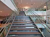 – I disse arealene plasserte vi garderober, noen møterom og undervisning. Fasade mot nord med hovedatkomst ble lagt inn i fjellsiden. Dette ble forsterket ved at gråsteinsmurer på utsiden ble trukket inn i resepsjonsområdet. Hele hovedatkomsten med resepsjonsområdet ligger i et glassbygg som er åpent opp over tre etasjer. Hoveddelen av bygget er et stort volum som ligger mot sør. I bakkant består dette volumet av betongelementer. Mot sørvest er en etasje løftet opp for å gjøre det lettere. Her er fasaden av glass i nedre etasje og platekledning med innslag av store glassfelt i de øvrige. Bygget er også knyttet sammen med et eksisterende kontorbygg via en glassgate i tredje plan, sier Eide.