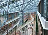 Bærende konstruksjon over bakkeplan består av plasstøpt betong og stål. Taket er tilnærmet flatt. Glasstaket over glassgården er på drøye 2.000 kvadratmeter. Fasadene er tekket med fiberbetong og aluminium og har store glassfelt mot glassgården.