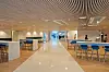 senter og kantine. Hovedinngangen er klart markert som enden av alléen. Det er avsatt plass for shuttle-busser og taxi, opplyser Niels Torp Arkitekter.