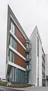 Niels Torp Arkitekter opplyser at bygningene er lagt omkring et samlende parkbehandlet gårdsinteriør, med avvekslende behandling av grønne flater for opphold, hvile, møter og fest.