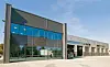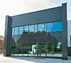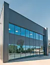 Kontordelen er trukket lenger frem enn hallene slik at bygget har en L-form, og har en glassfasade ved inngangspartiet. Bære-