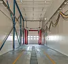 Det er systemhimlinger, systemvegger og fliser, teppeflis og parkett i kontordelen. Mellom hallene er det faste skillevegger. Gulvene i hallene på en påstøp på 15,5 cm som er armert og stålglattet.