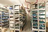 I verkstedhallen er det to 24 meter lange graver av stål som