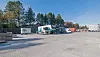 Rundt bygget er det 6,3 mål med belegningsstein på sand og parkeringsplasser for cirka 30 busser og like mange personbiler.