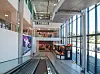 Tilbygget rommer to 32 meter lange rullebånd og har en stor glassfasade. Rullebåndene er produsert og levert av Thyssen-