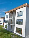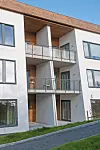 – De tre byggene er lagt rundt det flotte hageanlegget i prosjektet og virker som en støyskjerm. Det nordligste bygget, som er nærmest E39, har ingen soverom mot veien. De andre har cirka 50 prosent mot veien og 50 prosent mot hageanlegget. Naboene til prosjektet har fått ny og bedre tilkomstvei langs ytterkanten til de nye boligene og slipper nå en meget bratt og vanskelig adkomst via gang- og sykkelsti, sier Carlsen.
