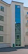 Fasadeuttrykket er beholdt. Det er bygget et nytt trappehus som tilpasser seg eksisterende bygg uten å legge skjul på at det ikke er del av det opprinnelige bygget. På grunn av krav om støy-