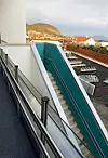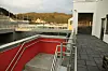 Utvendig er det fasader med STO-puss, som det er god erfaring med på tidvis værharde Nordvestlandet, og innslag av Formica-plater. Alle beslag er i syrefast stål.