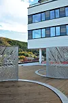 En ting man har viet mye fokus i dette prosjektet, er utomhus-anlegget. Her har man fått en stor kaifront og et dekorativt og moderne lekeområde for barn. Dette skal kommunen drifte, og et betydelig offentlig innskudd har også gått til prosjektet for å få de påkostede uteområdene.