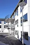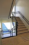 – Det er mange gode rekkverkløsninger i dette bygget som forteller om produktutvikling i praksis, sier Løvdal Stauri. Også i valget av dører og vinduer har tidligere erfaring med produktene i et værhardt kystklima betydd mye.