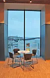 – Fasadeelementene fra Overhalla Betongbygg fremstår i mange ulike varianter med forskjellig behandling. Noen er i slipt, noen er i børstet betong og behandlet med antitagging i nederste del. Vi har tatt forskjellige hensyn til at de står i et maritimt miljø med stor overdekning på armeringen for å unngå korrosjon. Overhalla monterte selv fasadeplatene i løpet et helt år. Selv om det kan se ut til at fasaden har mye glass, er det i sum ikke så mye. Persienner skal skjerme mot intenst lys og soloppvarming. Byggene er gode klasse B-bygg, påpeker han.