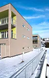 – Heis og balkonger er trukket inn i byggenes hovedvolum for ikke å virke for dominerende i de felles mellomrommene. I tillegg er det også felles takterrasser med støyskjerm og levegg mot nord i hvert bygg, forklarer Aspaas.