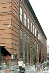 En dobbelvegg mellom verkstedhallen og maskinhallen holder de to byggene atskilt uten mange gangforbindelser mellom de to byggene.