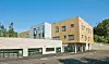 – Det var et ønske om desentraliserte innganger, også med differensierte uteanlegg i et anlegg som skulle være lett å lese. Alle fellesfunksjonene ligger i den steinkledde, langsgående sokkelen, som er en slags fortolkning av terrenget. Over denne er de tre frittstående fløyene plassert, kledd i accoya, både som en kontrast til steinfasaden, men også som et naturlig materiale som spiller på lag med naboskapets trekledte eneboliger, forklarer Jon Flatebø i L2 Arkitekter.