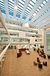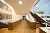 I første etasje er det en rekke fellesfasiliter for byggets leietakere, som resepsjon, trimrom, kantine, møte-