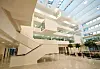 I bygget er det utstrakt bruk av akustisk puss, som lyddempende tiltak, blant annet på alle hvite overflater som brystninger, trapper og fronter på møtebokser. Dette var tidkrevende og fordret stillas i atriet helt til alle fire sjiktene var lagt på.