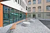 Skolen er dimensjonert for inntil 540 elever. I et bysentrum er det naturlig nok begrensede muligheter for å etablere store nok utomhusarealer – i det omfang man kunne ønske. Her ble det løst ved å åpne en mur mot vest og anlegge et amfi til nærmeste nabo, Sofienbergparken. Det gjør adkomsten til grøntarealene lettere og med kortere vei for elevene.