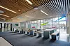 – Nå har fellesarealene blitt fine og hensiktsmessige. Det er en nærhet mellom administrasjon, personalet og elevene. I andre etasje i det fullstendig ombygde mellombygget er det nå gjennomgang for elevene, som er atskilt fra lærerarbeidsplassene og personalrommene i samme etasje, understreker Under-visningsbyggs prosjektleder Jasmin Henanger.