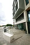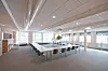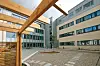 Sammenkoblingen mellom et moderne og et rehabilitert kontorbygg fra slutten av 50-tallet, gir naturlig nok en viss nivåforskjell i etasjene.