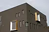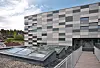 – Tanken var at det skal være en skulpturell dynamikk i designet når man beveger seg rundt. Det er et langt bygg, og vi ville bryte det litt ned med to former med hvert sitt hovedmateriale. Den ene formen er puss med et mørkt uttrykk som en slags forankring i bakken. Mens den andre formen – system-fasade med glass- og plate-kledning fra Ivarsson – beveger seg opp og strekker seg rundt og er langt mer ekspressiv i uttrykket, forklarer Jarl Ture Vormdal i Griff Arkitektur.
