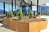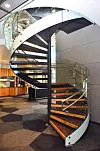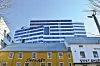 Også fasaden, bestående av flere forskjellige komposittelementer og glass, vrir og vender på seg, og gir et oppbrutt, isaktig uttrykk.