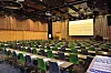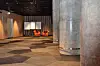 Salen er omtrent 1.000 kvadratmeter stor, og har vegger kled i trespiler for akustiske og visuelle hensyn.