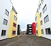 I de fire etasjer høye kubehusene er alle leilighetene hjørn-eleiligheter, med boligareal på 52, 65 og 125 kvadratmeter. Kubehusene er bygget med stålbæring og prefabrikkert betong som etasjeskille. Ytterveg-gene har bindingsverk i tre. Fasadene er kledd med trepanel. Alle leilighetene har balkong/terrasse. Parkeringskjeller med heis under tre av kubehusene og bodkjeller under de to øvrige.