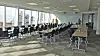 Ørland Sparebank er litt «kjerringa mot strømmen» også på annet vis. Her er det ingen store kontorlandskap, men 14 kontorer i hver av etasjene til de 28 medarbeiderne, og selvsagt et eget kontor til sjefen. Det er møterom i hver etasje, og et stort møterom med plass til 70 personer i toppetasjen. Der er det også egen kantine der de ansatte betjener seg selv.