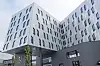 Grunnplanet, basevolumet er i to etasjer og består av en mørk betongfasade. Hovedinngangen er vendt mot DnB Arena. Over grunnplanet ligger hotell-lamellene som er dimensjonert ut ifra modulbredde per hotellrom. For å tilfredsstille kravene til glass i energiklasse A er hotellrommodulene utført med ett større vindusfelt per hotellrom. Suitene, lokalt plassert mot gavl-fasader har vinduer i to himmelretninger. Det var et ønske at man skulle ha en sentral, vertikal kjerne, påpeker hun og fortsetter: