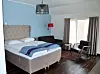 – Det er også med på å gi prosjektet en fin kvalitet og en tidløs design. Med tiden får bygget enda mer karakter fra samspillet av valgte materialer, mener han. Eksisterende bygg har fått en mørkere gråtone for å oppnå et moderne preg og en fin tilpasning til mellombygg og hotell. Et rolig og nøye utvalgt sortiment av materialer med kontraster og tydelig definerte hjørner og kanter med aluminium, treverk og zink gir et klart og tydelig formspråk. Hotellet er rustet for fremtiden, samtidig som det tar vare på tradisjonen med de gamle sjøhusene, understreker Humberset.