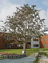 Anne in’t Veld sier at bøketreet og flyten i bygget har påvirket hvilke avdelinger som skulle ligge ved siden av hverandre. – Ønske om best mulige uterom med sol fra tidlig morgen til sent på kveld og publikumsarealer plassert nær en sentral hovedinngang var med å utforme bygget. Treet ble også den røde tråden i den innkjøpte kunstsamlingen.