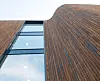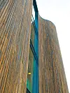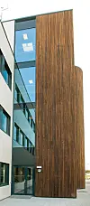 Hovedbygningen består ifølge Anne in't Veld for det meste av kontorer og her benyttes det fasadeplater. For å bryte den lange fasaden er det valgt tre ved inngangene. Høye glassfelt som gir lys inn til foaje og korridorer danner vertikale felt som deler den lange fasaden i mindre deler. Boenhetene som er vendt mot parkområdet får et mykere uttrykk ved at de er kledd i tre. For at hovedbygget med poliklinikkene og den bakenforliggende døgnposten skal oppleves som et bygg, er det også benyttet mindre områder med fasadeplater på sørsiden.