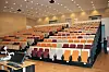 Det nye auditoriet har 347 sitteplasser med nedfellbare stoler og bord integrert i tribunen. De integrerte nedfellbare bordene var noe den svenske produsenten av tribunesystemet ikke hadde laget før. Dette ble utviklet etter kravspesifikasjoner fra de høgskoleansatte og Statsbygg.