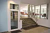 Han forteller også at det var behov for en kafe som supplement til eksisterende kafé. At det var viktig at den lå lett tilgjengelig for en stor mengde mennesker, og har tilgang og utsyn via en stor ny glassfasade rett ut til hagen.