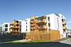 Mevåg synes balkongene i massivtre gir bygget et spenstig uttrykk. De ble levert fra Splitkon i tre deler, sidevanger og dekker, og ble montert på plassen. De øvrige to blokkene vil få tilsvarende balkonger.