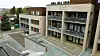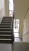 Hver av blokkene er delt i to med en gjennomgående korridor som binder blokkene sammen. Store glassfasader i begge ender av korridoren sørger for lys og en åpen atmosfære.