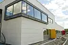 Den øvrige delen av bygget, som er bygget utenpå hallene, er oppført i stål og tre og kledd med Cembrit fasadeplater. Her har de tre inngangene til bygget fått hver sin farge – gul inngang er for spillere, trenere, dommere og andre som skal bruke hallene, rød inngang er for publikum mens grønn inngang er for brukere av selskapslokalene og de som skal til klubbhusdelen av bygget.
