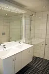 Alle bad er levert som ferdige baderomskabiner, fra Contech i Litauen. Dette er ett av selskapene som eies av Otterlei Group.