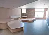 Den utstrakte bruken av fibergipsen var utfordrende for tømrerne. Den var beskrevet i kravspekken, og var et av mange miljøvennlige materialer. Men fibergipsplatene veide ca. 15 kilo pr. kvm, kontra ni kilo for vanlig gips. I stedet for dobbelt lag med fibergips der det var påkrevet, ble det innerste laget byttet ut med vanlig gips.
