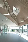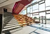 broer og -trapper som får lys inn fra den sørvendte glassfasaden.