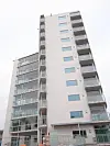 – Vi har gjort en del tiltak for å skjerme for vinden. Har glasset inn deler av balkongene med skyvedører av glass, slik at man kan sitte bak glasset og være skjermet. Vi har lagt tre leiligheter i hver etasje, men tårnet smalner av oppover. Derfor er det i de to øverste etasjene kun to leiligheter pr. etasje. Alle leilighetene byr på svært god utsikt, mens det på den overskytende delen av takflaten i tiende etasje er etablert en felles takterrasse, sier Jahnsen.