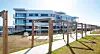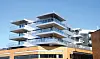 Størstedelen av de fire boligblokkene ligger som frittliggende volumer oppå taket, men med store utkraginger – for det meste hengende ut mot nord. Boliglammelene skal se ut som om de svever over bakken. I kombinasjon med de aluminiumkledte fasadene skal de gi assosiasjoner til flykropper fra den gang det lå en hovedflyplass her. Aluminium og glass står i lett kontrast til den tyngre granitten og det stående trepanelet vi finner i fasaden til senteret under.