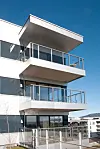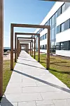 – Opprinnelig gikk boligene ned til bakken, men det gikk man etter hvert bort fra. Da skapte utkragingen i nordvest et spektakulært rom for inngangspartiet. Søylene her ser uregelmessige ut og kan se ut som om de tilfeldig plassert. Men det er de ikke, alle har en funksjon. Kun tre av dem er juksesøyler, uten noen egentlig bæreevne, sier partner Mario Obmascher i AMB Arkitekter.
