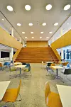 Oppe på taket har skolen en omtrent 300 kvadratmeter stor takterrasse til bruk for både lærere og elever, og skolebygget er også utstyrt med alle fasiliteter for både vanlig undervisning og spesialundervisning. Skolens musikkrom kan gjøres om til en scene mot det store atriet ved å skyve til siden den ene foldeveggen i rommet.