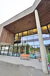 Fasadene består av omtrent 2.550 kvadratmeter glassfasader, ferdigelementer i betong og jernvitrolbehandlet malmfuru.