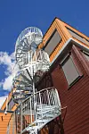 rampe, og isolerte prefabvegger i betong. I etasjene over er benyttet hulldekker i betong som etasjeskillere og plassbygde vegger i tre med 25 centimeter tykkelse. Fasaden består av liggende og stående trekledning.
